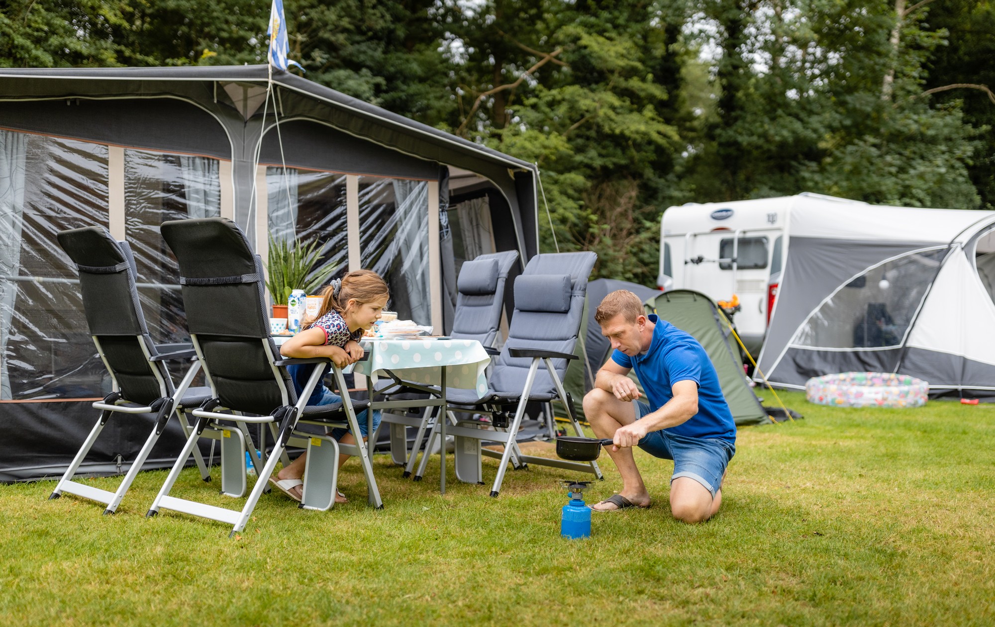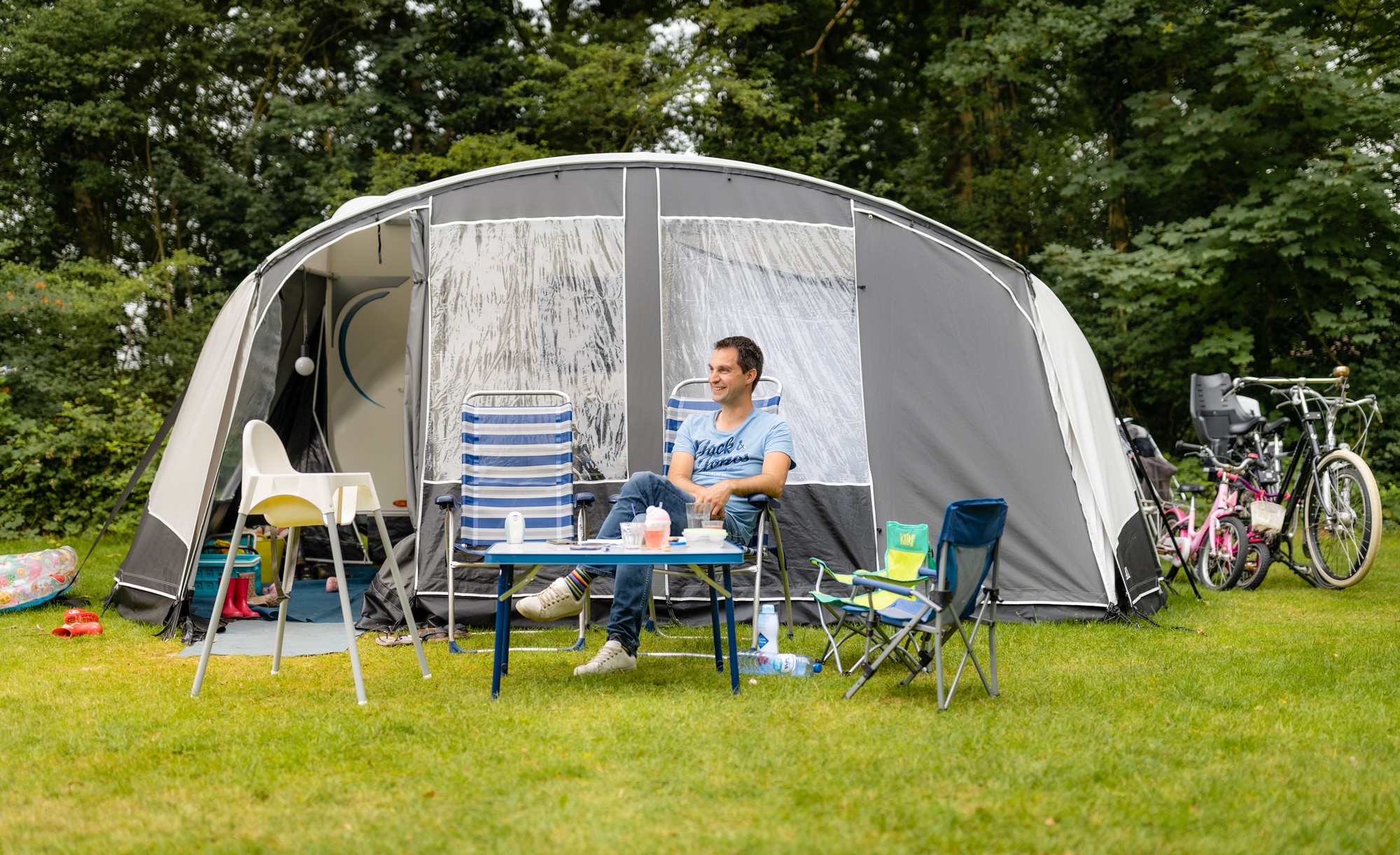 Ruime comfortabele kampeerplaatsen op hondvrij en autovrij veld