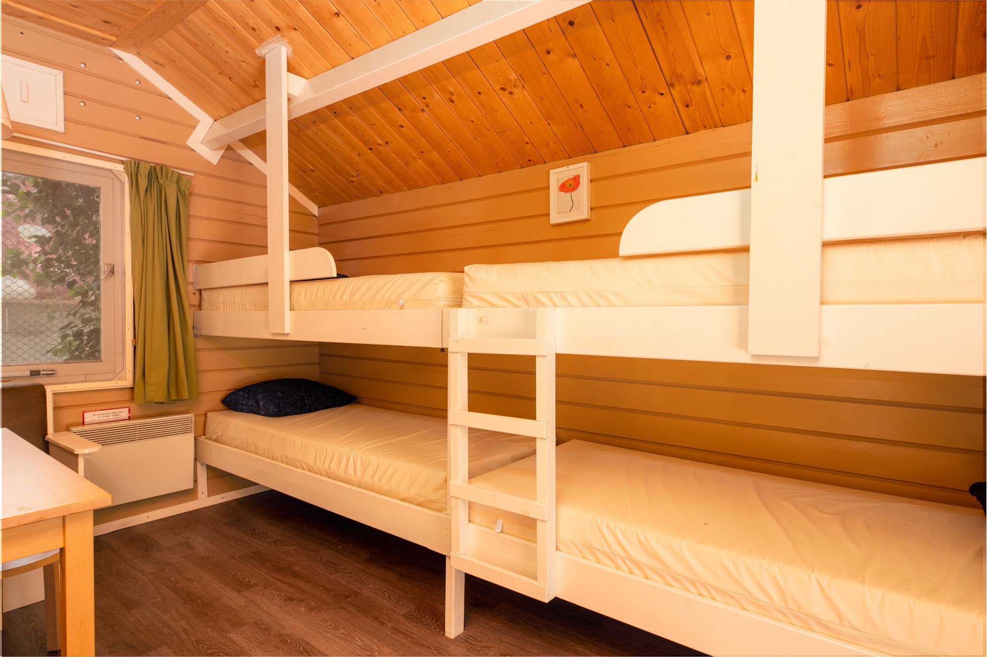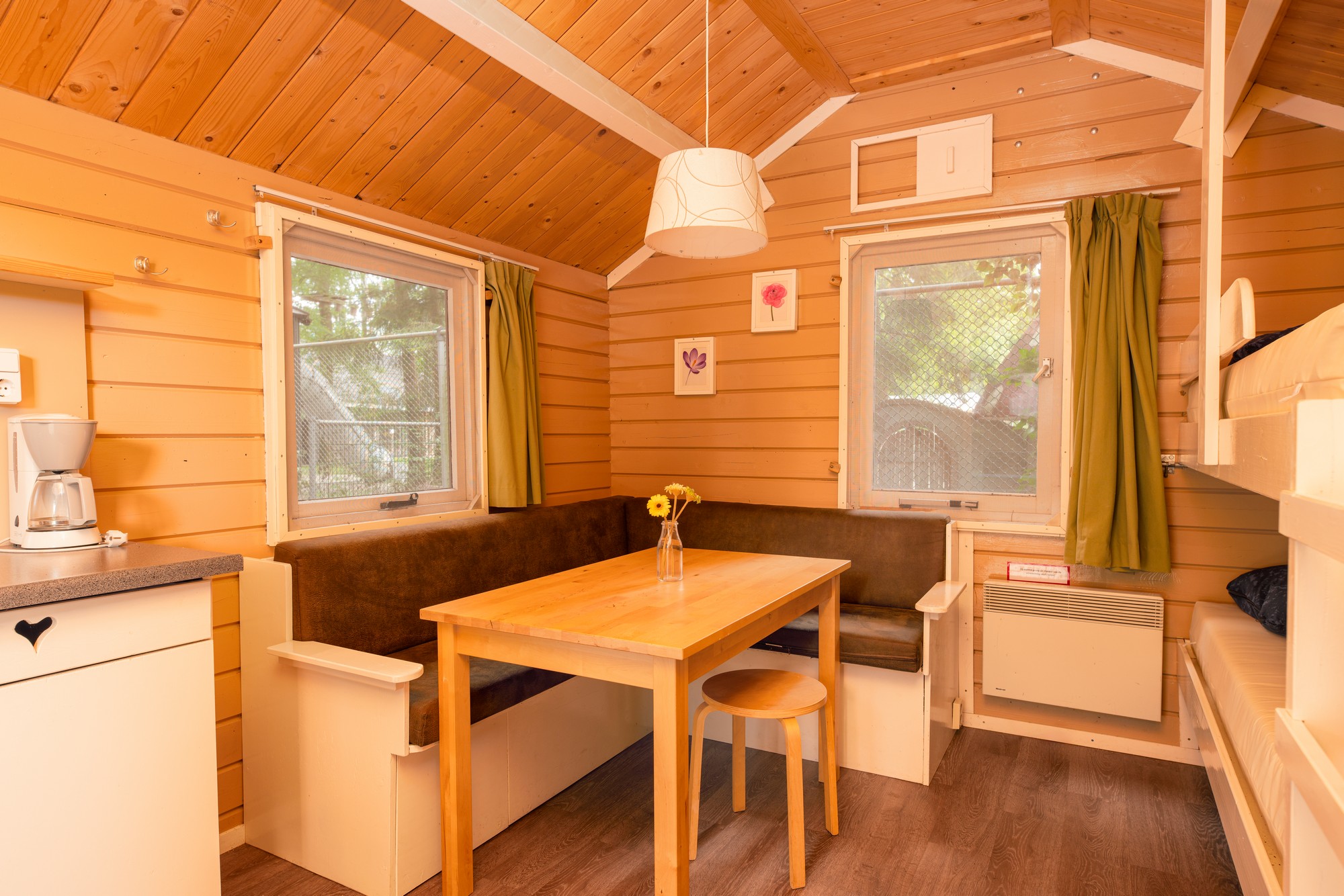 - knusse woonruimte met 2 stapelbedden inclusief kussens